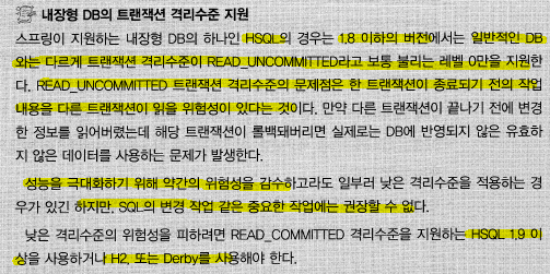 > 매우 분주하게 동작하는 서버환경이라면 트랜잭션 작업의 격리수준(isolation level)에도 신경 써야한다.