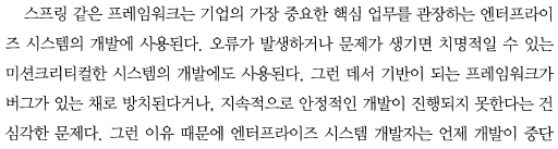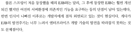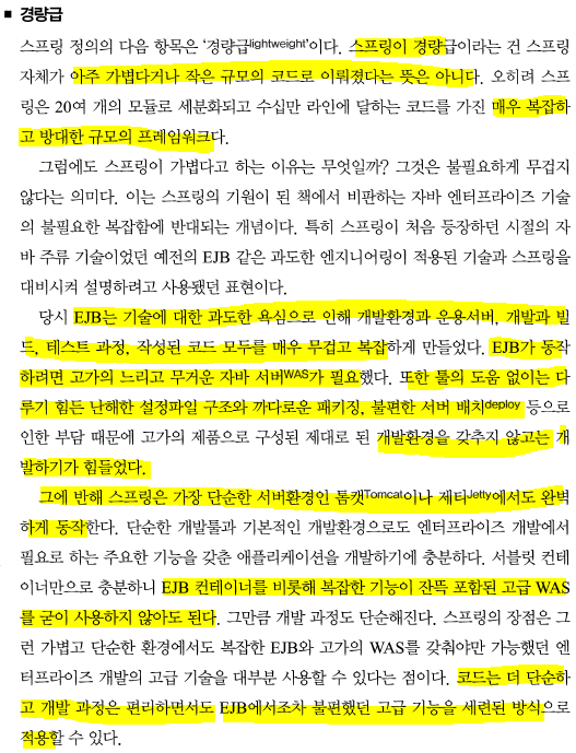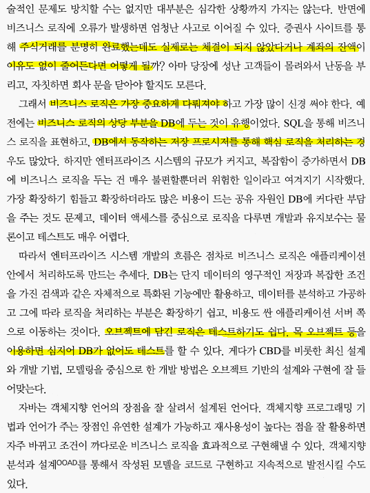 * 엔터프라이즈 애플리케이션 : 서버에서 동작하며 기업과 조직의 업무를 처리해주는 시스템. 많은 사용자의 요청을 동시에 처리해야 하기 때문에 서버의 자원을 효율적으로 공유하고 분배해서 사용할 수 있어야한다.