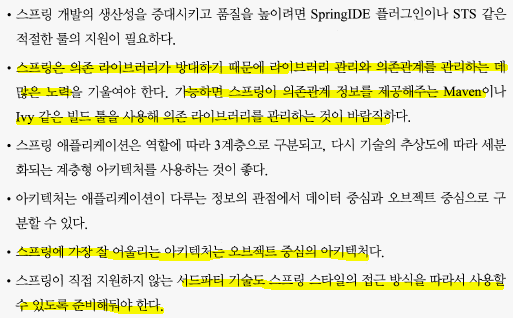 * 엔터프라이즈 애플리케이션 : 서버에서 동작하며 기업과 조직의 업무를 처리해주는 시스템. 많은 사용자의 요청을 동시에 처리해야 하기 때문에 서버의 자원을 효율적으로 공유하고 분배해서 사용할 수 있어야한다. HTTP를 통해 접근하는 웹클라이언트와 백엔드 DB를 사용하는 애플리케이션에 적합함.