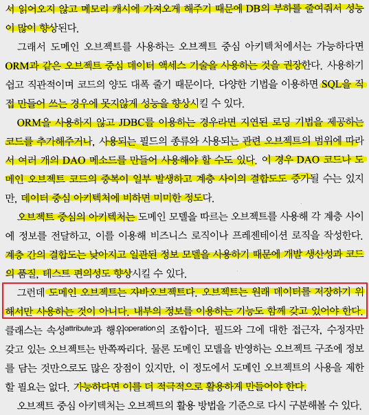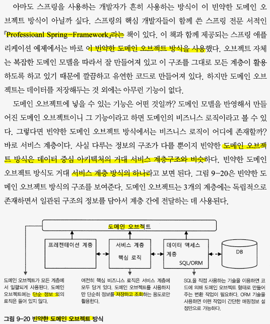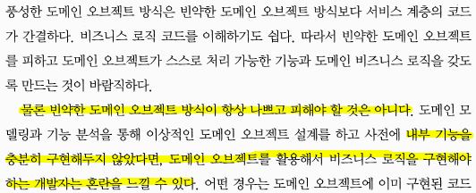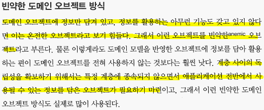 * 빈약한 도메인 오브젝트 방식 : 아무런 기능도 갖고 있지 않고 정보만 담겨있는 오브젝트