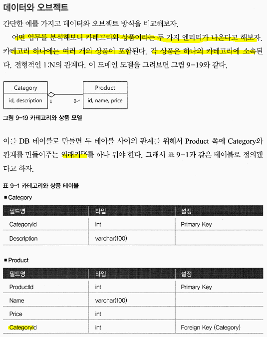 - 데이터 중심은 조인으로 하나의 맵으로 뭉뚱그려서 가져왔지만, 오브젝트 중심은 Category 오브젝트와 그에 대응되는 Product 열이 5개라면, 5개의 Product가 만들어질 것이다.