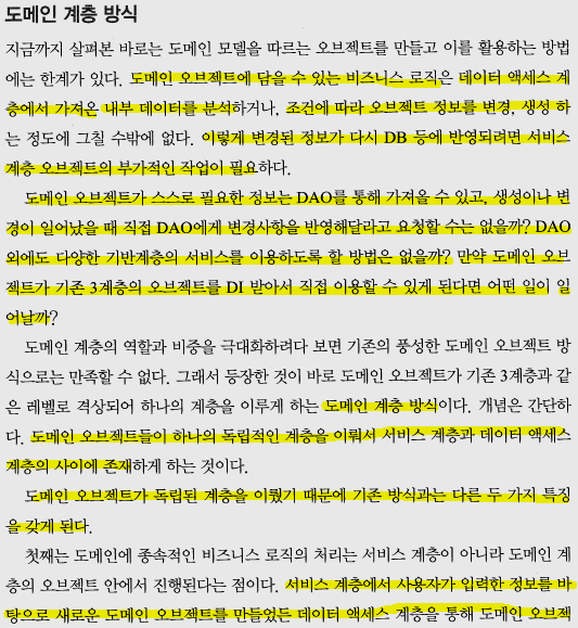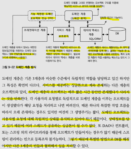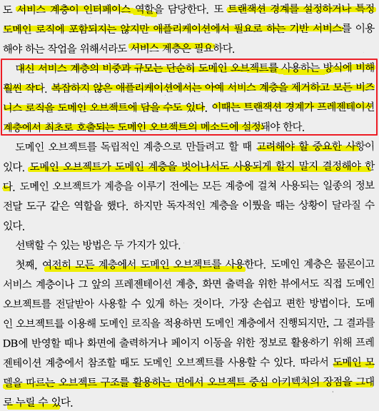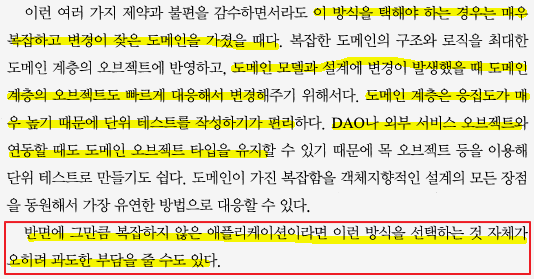 * 도메인 계층 방식은 많은 비즈니스 로직을 담을 수 있지만