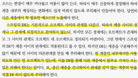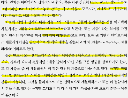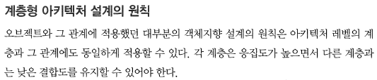 계층형 아키텍처(layered architecture) : 책임과 성격이 다른 것을 크게 그룹으로 만들어 분리해두는 것