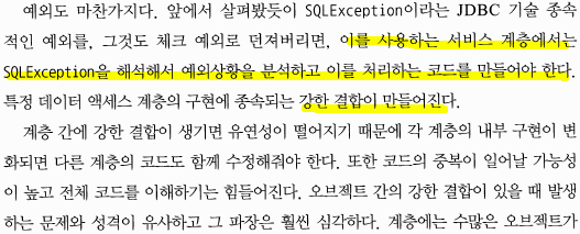 DAO에는 ResultSet, SQLException을 사용하면 JDBC를 사용하는 강한 결합의 형태가 된다.