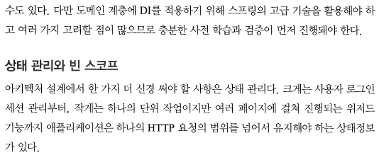 > 위처럼 아키텍처 및 스프링 컨텍스트를 웹기술의 서블릿컨텍스트/비즈니스 서비스, 데이터 액세스 계층을 담은 루트 컨텍스트로 나누는 이유는 서블릿 컨텍스트를 통째로 다른 기술로 대체할 수 있도록 하기 위해서다.