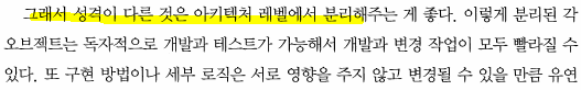 > 많은 개발자들이 추구하긴함. 독립적으로 만드는데 편함.