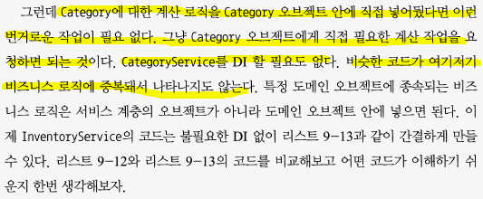 - Category 도메인 모델에 모든 상품을 리턴하는 메서드를 만들어 모든데 공통으로 사용할 수 있고, 비즈니스로직도 줄어든다. (이전 예제의 레벨 오브젝트가 좋은 예임)