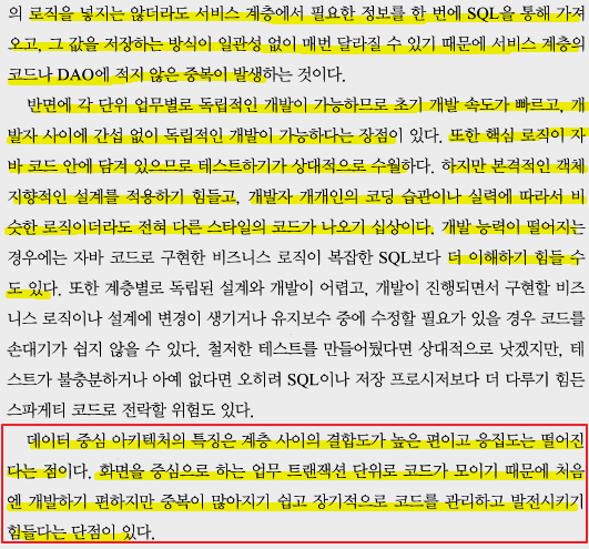- 만약 DAO에서 SQL을 변경하거나 필드 개수나 순서, 이름을 바꾼다면 서비스, 프레젠테이션 계층의 코드도 같이 변경 돼야 한다.