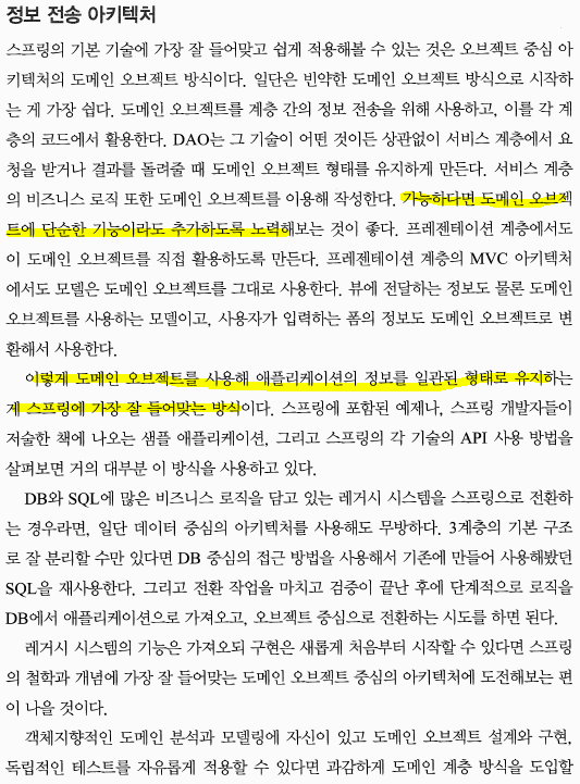 DB(데이터) 중심의 아키텍처를 선택한다면 스프링의 장점을 제대로 누릴 수 있는 기회를 얻지 못한다.