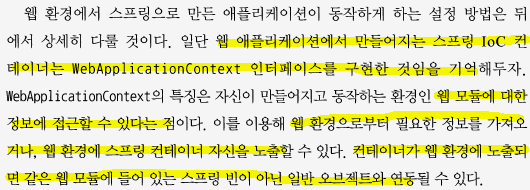 67. 스프링은 XML 지옥이란 얘기가 있다. 근거없는 비방이다. XML은 최소한의 꼭 필요한 정보만 사용할 수 있도록 잘 설계된 문서다. 물론 XML을 사용하고 싶지 않다면 XML 파일 없이 스프링 어플리케이션을 만들 수도 있다. GenericApplicationContext는 빈 설정 리더를 여러 개 사용해서 여러 리소스로부터 설정 메타 정보를 읽어 refesh() 메소드를 한번 호출해서 애플리케이션 컨텍스트가 필요한 초기화 작업을 수행하면 된다.