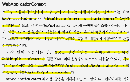 - 가장 일반적인 애플리케이션 컨텍스트. 실전에서 사용될 수 있는 모든 기능을 갖추고 있는 애플리케이션 컨텍스트. 컨테이너의 주요 기능을 DI를 통해 확장할 수 있도록 설계되어 있다.