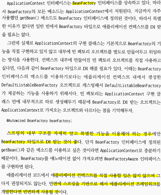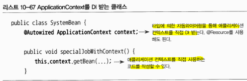 > 스프링 컨테이너는 자신을 빈으로 등록해두고 일반 빈에서 DI 받아서 사용할 수 있다.