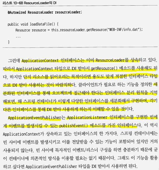 * 컨테이너가 자동등록하는 빈 (ApplicationContext, BeanFactory, ResourceLoader)