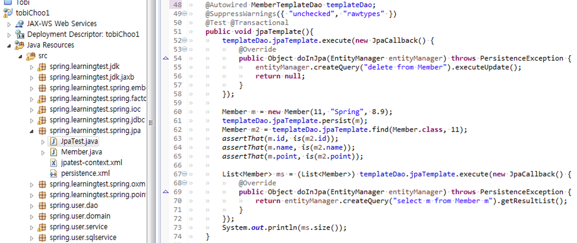 61,62. JpaTemplate는 콜백 오브젝트 없이도 대부분의 기능을 사용하게 해준다.