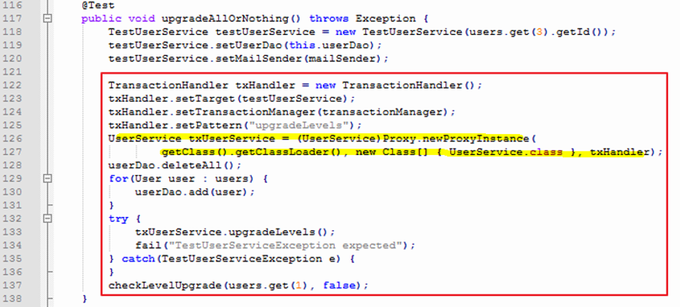 스프링 AOP는 프록시가 적용되면 클라이언트는 프록시를 타깃 오브젝트라고 생각하고 프록시 메소드를 호출한다. 따라서 트랜잭션은 타깃메소드 호출전에 트랜잭션을 시작하고 호출 후에 트랜잭션을 커밋하거나 롤백해줄 것이다.