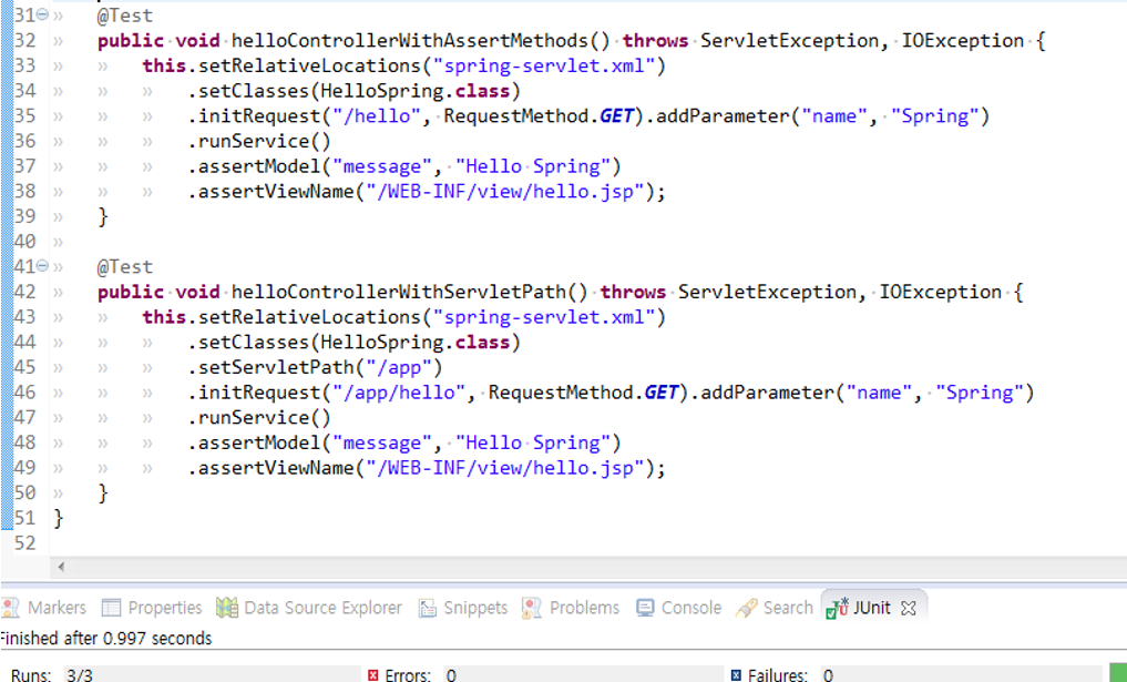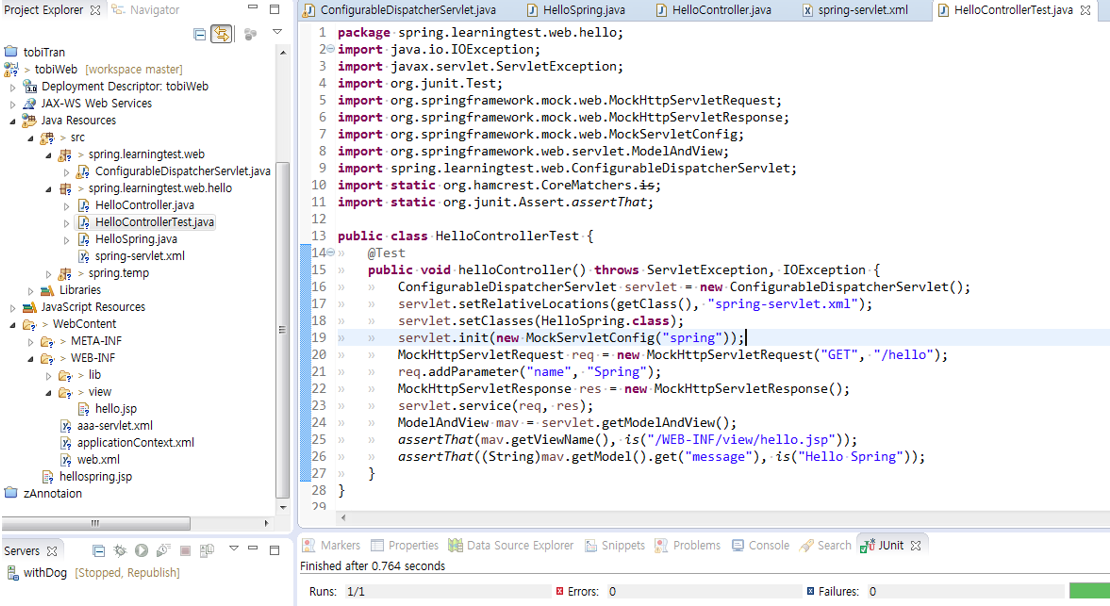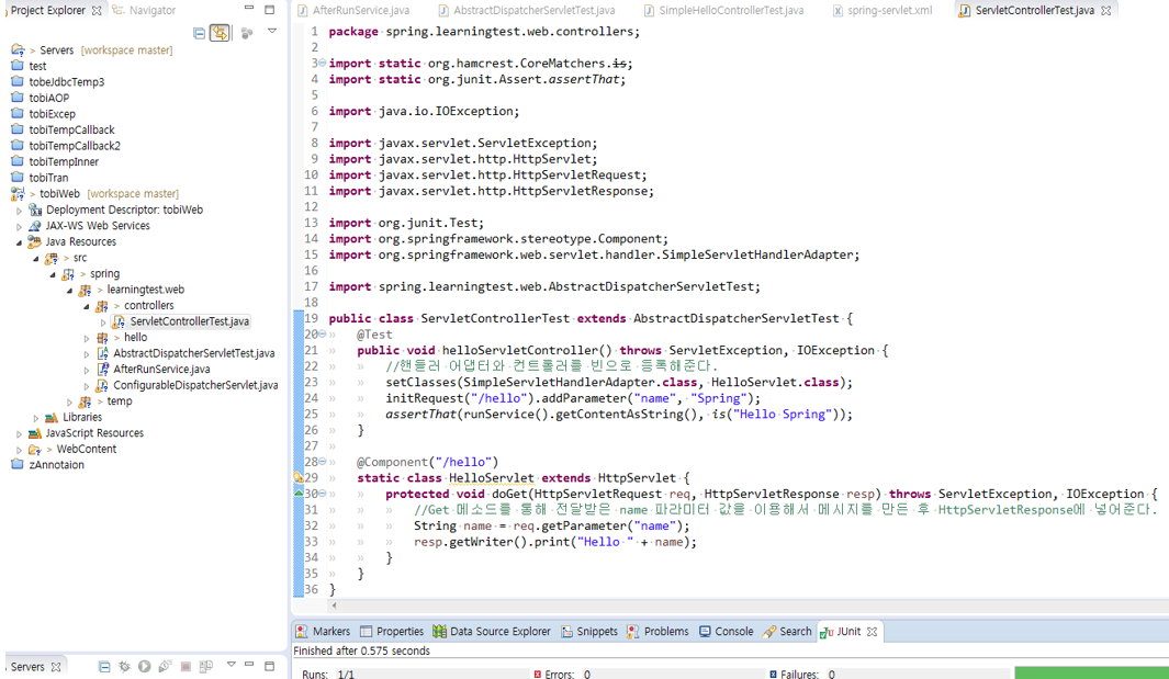 AbstractDispatcherServletTest 덕분에 XML 설정 파일 없이 테스트할 수 있다.