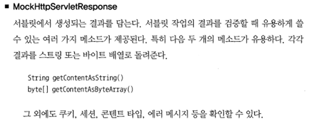 Request, response 외에도 세션, 서블릿컨텍스트, 서블릿콘피그 등 다양한 테스트 도우미들이 많이 있다.