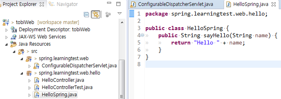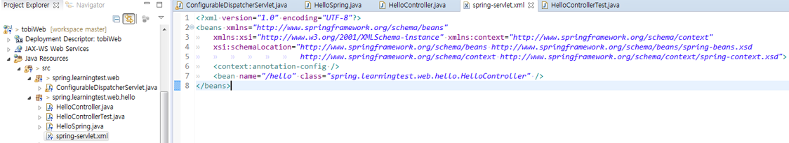 원래 HelloSpring은 루트 컨텍스트에 따로 등록했지만 동작을 확인하는 것이 현재 주 관심사이므로 따로 분리하지 않고 컨텍스트를 만들었다.
