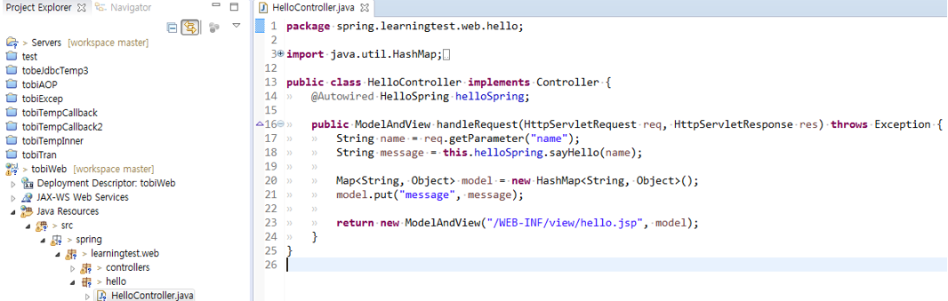 25. JSP뷰를 HTML을 완성해야 최종 생성 결과를 확인할 수 있다. 하지만 복잡한 작업인데다가 굳이 그럴 필요없으므로 적절한 모델과 뷰를 리턴했는지를 직접 검증하는 것이 훨씬 간편하고 효율적이다.