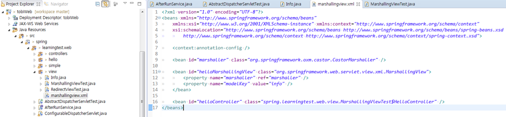 11. marshaller 빈을 사용해서 Info 오브젝트를 XML로 변환해줄 뷰인 MarshallingView를 빈으로 등록.