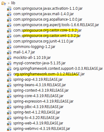 6. Com.springsource.org.cator.xml : 자동으로 자바 오브젝트를 XML로 변환 지원.