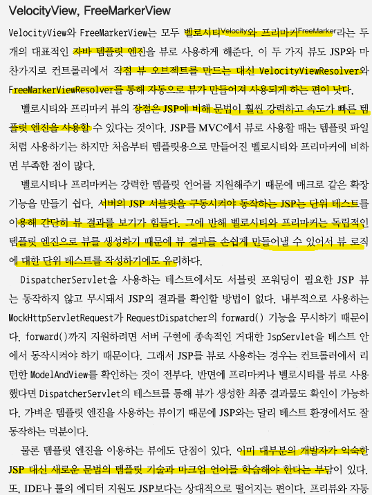 논리적인 이름을 종속시키지 않으면 “jsonView” 또는 벨로시티나 프리마커 뷰로 전환해도 뷰 리졸버의 suffix를 .vm .flt 로 바꿔주기만 하면 된다.