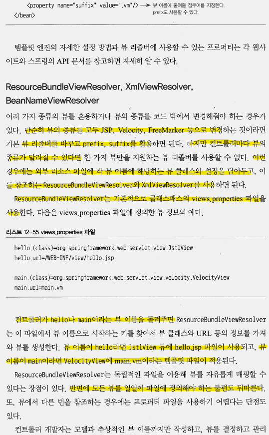 ResourceBundleViewResolver : 컨트롤러마다 뷰의 종류가 달라질 때 사용 085.뷰리졸버 참조