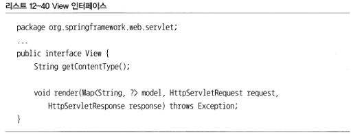 DispatcherServlet이 사용하는 뷰 오브젝트는 위의 스프링의 View 인터페이스를 구현해야한다.