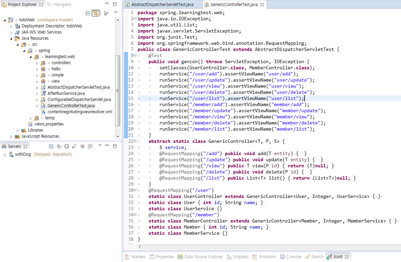 * 번거로운 XML 설정 대신 AbstractDispatcherServletTest를 사용