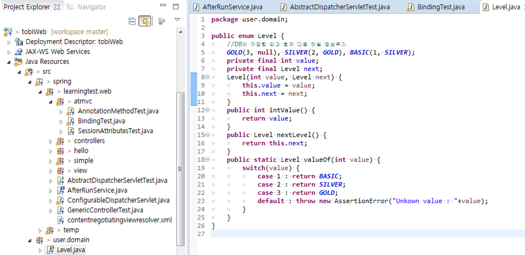 23. getValue : Level 타입의 외브젝트를 가져옴