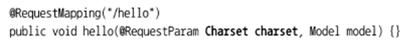프로퍼티 에디터는 XML의 value 애트리뷰트뿐 아니라 @Controller의 파라미터에도 동일하게 적용된다. URL이 /hello?charset=UTF-8이라면, 컨트롤러의 메소드의 charset 파라미터는 UTF-8로 설정된 Charset 타입의 오브젝트를 받게 될 것이다.