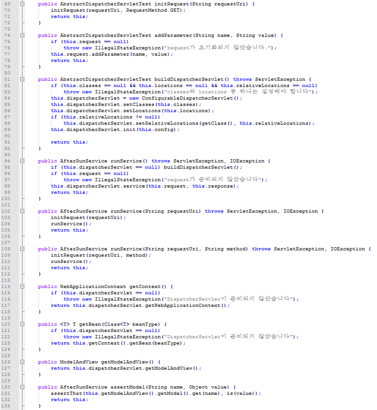 * 번거로운 XML 설정 대신 AbstractDispatcherServletTest를 사용