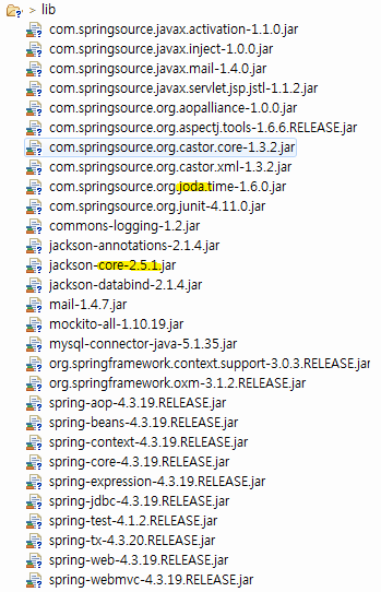7. Com.springsource.org.cator.core : 자동으로 자바 오브젝트를 XML로 변환 지원.