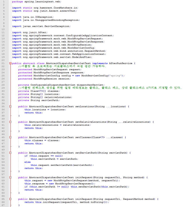 * 번거로운 XML 설정 대신 AbstractDispatcherServletTest를 사용