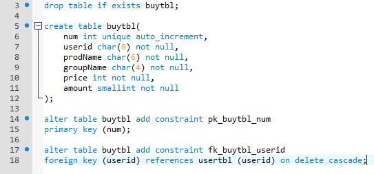 18. on delete cascade : 기본키가 삭제하면 외래키도 삭제한다.