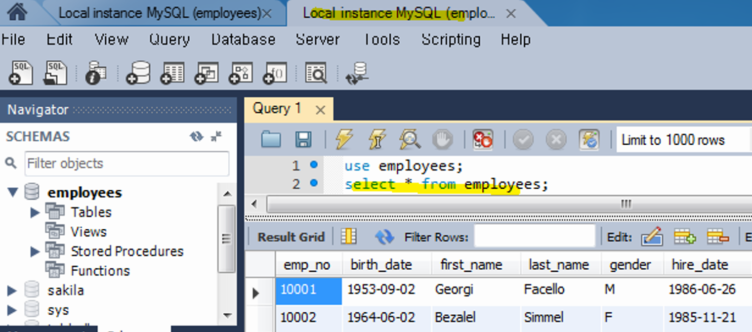 3~4. Temporary table 임시테이블 생성. Temptbl은 원래 없는 테이블이니 당연히 생성되고, employees는 기존 테이블을 무시하고 임시테이블을 생성한다.