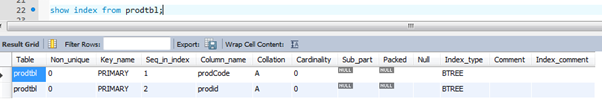 22. Show index from 테이블명 : pk fk 정보 조회, 위 스샷은 복합키 이므로 두열이 합쳐져 pk라고 조회됨.