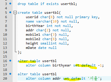 18~19. insert할 때 default로 입력하거나, 아무것도 입력하지 않으면 default값이 셋팅.