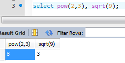 * degrees(숫자), radians(숫자), pi() : 라디안 값을 각도값으로, 각도값을 라디안 값으로 변환한다. Pi는 파이값인 3.141592를 반환한다.
