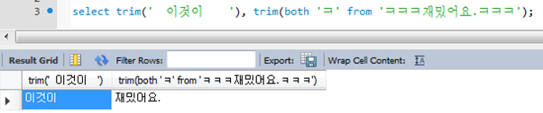 * trim(문자열) : 문자열의 앞뒤 공백을 모두 없앤다.