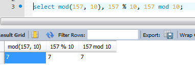 * mod(숫자1, 숫자2) 또는 숫자1 % 숫자2 또는 숫자1 mod 숫자2 : 숫자1을 숫자2로 나눈 나머지 값을 구한다.