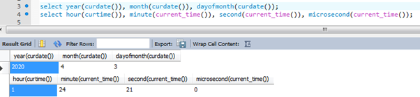 * date(), time() : datetime 형식에서 연-월-일 및 시:분:초만 추출한다.