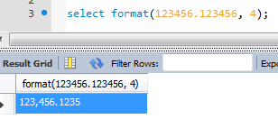 * format(숫자, 소수점 자릿수) : 숫자를 소수점 아래 자릿수까지 표현하며, 1000단위 콤마