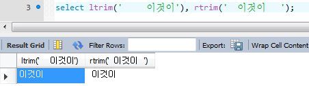 * Ltrim(문자열), rtrim(문자열) : 문자열의 왼쪽/오른쪽 공백을 제거. 중간의 공백은 제거되지 않음