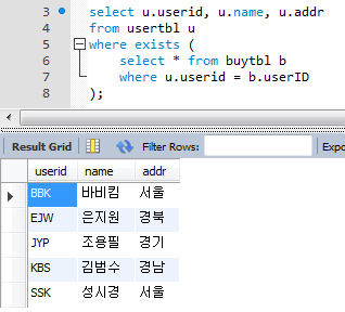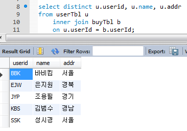 회원들 중 구매한 이력이 있는 회원이 중복되게 나와야 하지만, distinct를 걸어주면 중복이 제거되어 구매한 이력이 있는 회원들을 중복없이 볼 수 있다.