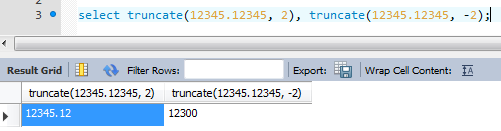 * truncate(숫자, 정수) : 숫자를 소수점을 기준으로 정수 위치까지 구하고 나머지는 버린다.