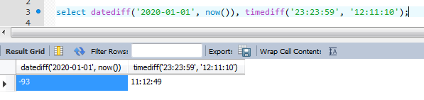* datediff(날짜1, 날짜2) : 날짜1 – 날짜2의 일수를 결과로 추출한다.