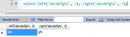 * left(문자열, 길이), right(문자열, 길이) : 왼쪽 또는 오른쪽에서 문자열의 길이만큼 반환한다.