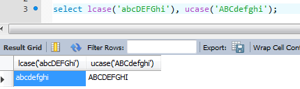 * ucase(문자열), lcase(문자열) : 소문자를 대문자로, 대문자를 소문자로 변경한다.