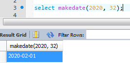 * makedate(연도, 정수) : 연도에서 정수만큼 지난 날짜를 구한다.